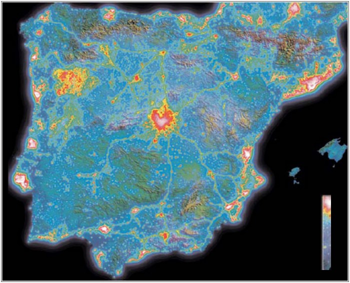 Non é a primeira vez que falamos da contaminación lumínica neste blog e hoxe amosamos o mapa da contaminación lumínica na península ibérica que nos chega vía ecomicrosiervos. A pesar de estar elaborado en base a cálculos e non a observación directa, dá unha boa idea de cal é a realidade.