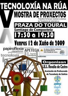 O noso compañeiro Jorge, do IES Rosalía de Castro de Santiago de Compostela fainos chegar a convocatoria de Tecnoloxía na Rúa do vindeiro día 12 de Xuño. Trátase dunha exposición de proxectos realizados por alumn@s de tecnoloxía de centros de toda Galicia.