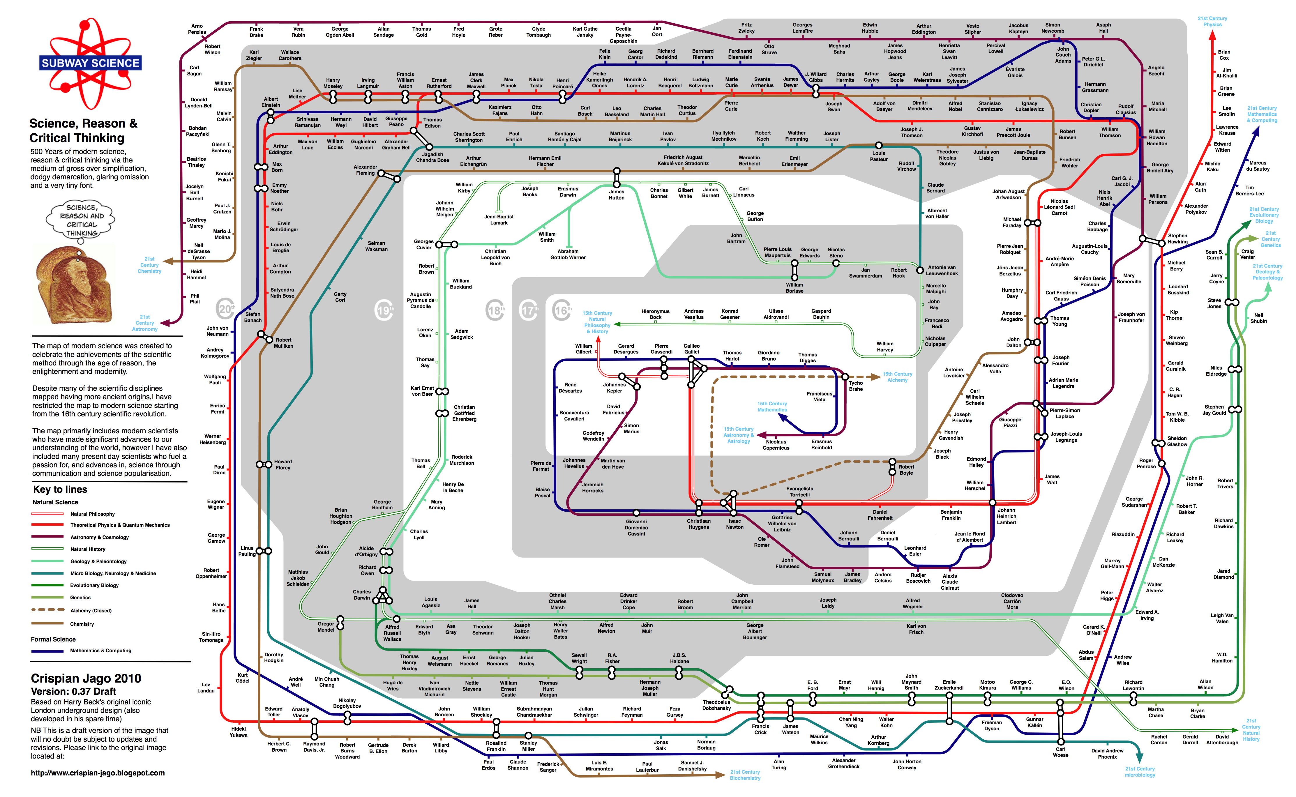 Un mapa de metro para representar a historia da Ciencia, a Razón e o Pensamento Crítico. Facede clic sobre ela para vela a maior tamaño.
