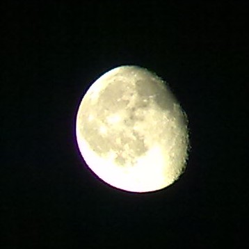 Outra foto da Lúa Nesta ocasión non tiven tan boa man, pero lembrade que todas estas fotos están sacadas coa cámara dun móbil a través duns prismáticos montados nun trípode. Astrofotografía lowcost! Compartir: Share on X (Se abre en una ventana nueva) X Compartir en Facebook (Se abre en una ventana nueva) Facebook Gústame Cargando... Relacionado Comentarios pechados