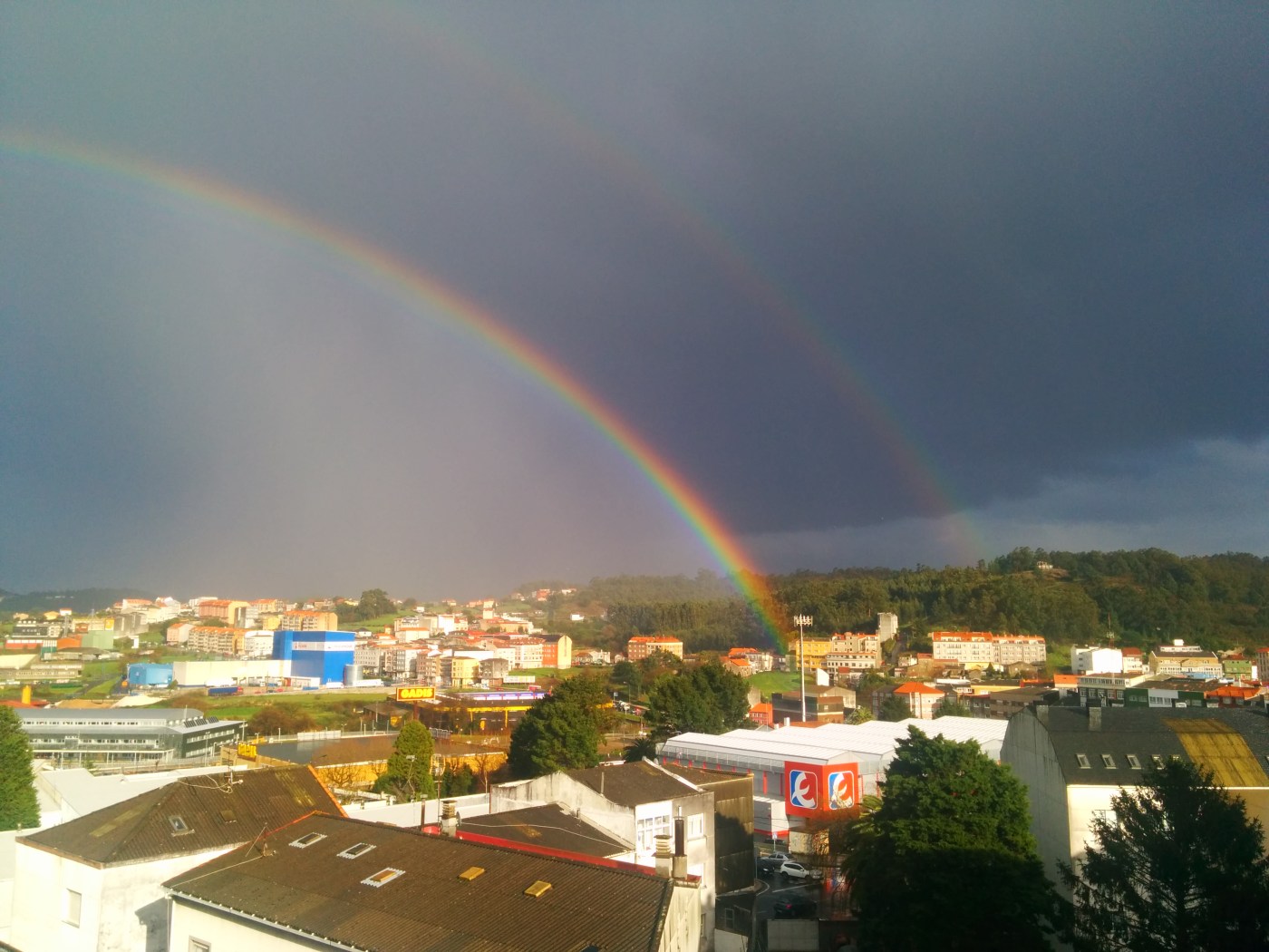 En ocasións pode apreciarse o que chamamos arco da vella secundario. Se observas con atención, verás que as cores están dispostas en orde inversa, sendo a cor vermella a máis interior e a violeta a máis exterior. Tamén podes observar que entre o primario e o secundario aparece unha zona visiblemente máis escura que o resto do ceo. Denomínase banda de Alexandre.