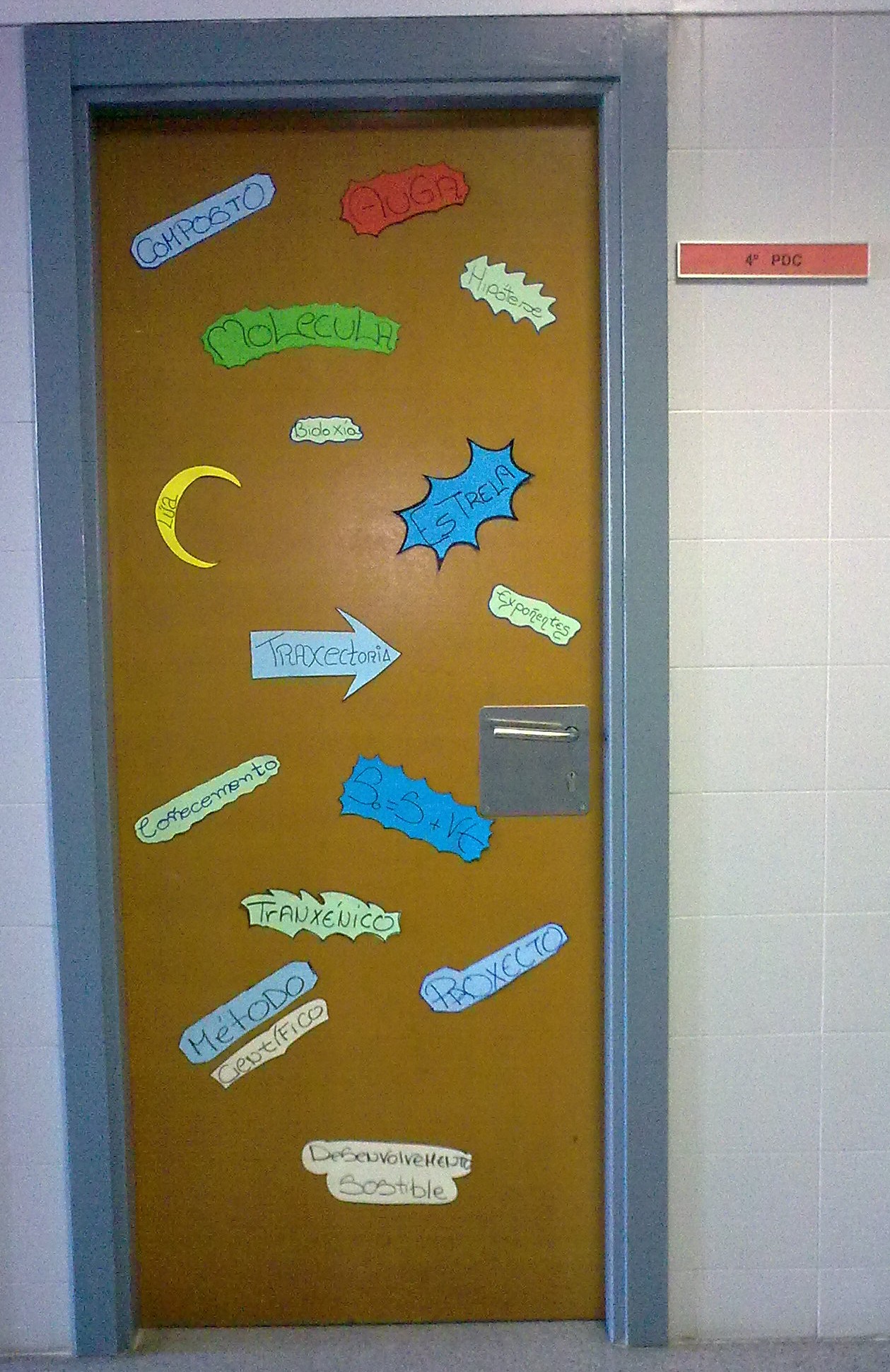Seguindo a idea proposta por María Loureiro dende tecnoloxia.org, fixemos unha recompilación de termos que empregamos diariamente no Ámbito Científico-Técnico e pegámolos por toda a aula… e tamén fóra!