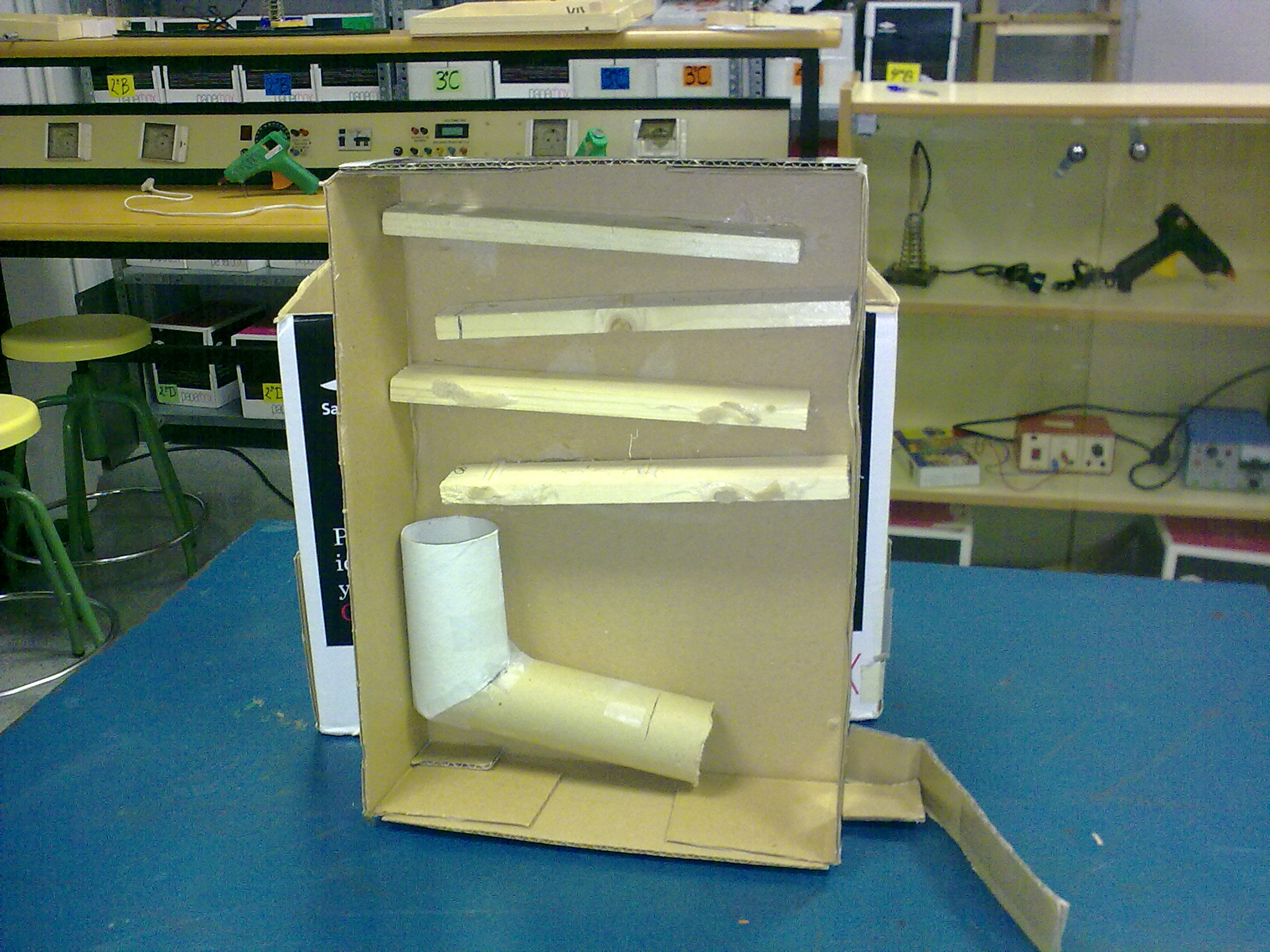 Hoxe tivemos a última clase de 2ºD e aproveitamos para gravar vídeos dos proxectos en funcionamento. Este correspóndese co pinball do grupo laranxa, pero podedes ver os vídeos dos outros grupos na canle de YouTube do Blog de Tecnoloxía.