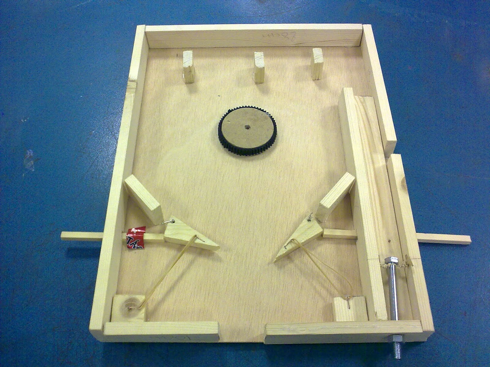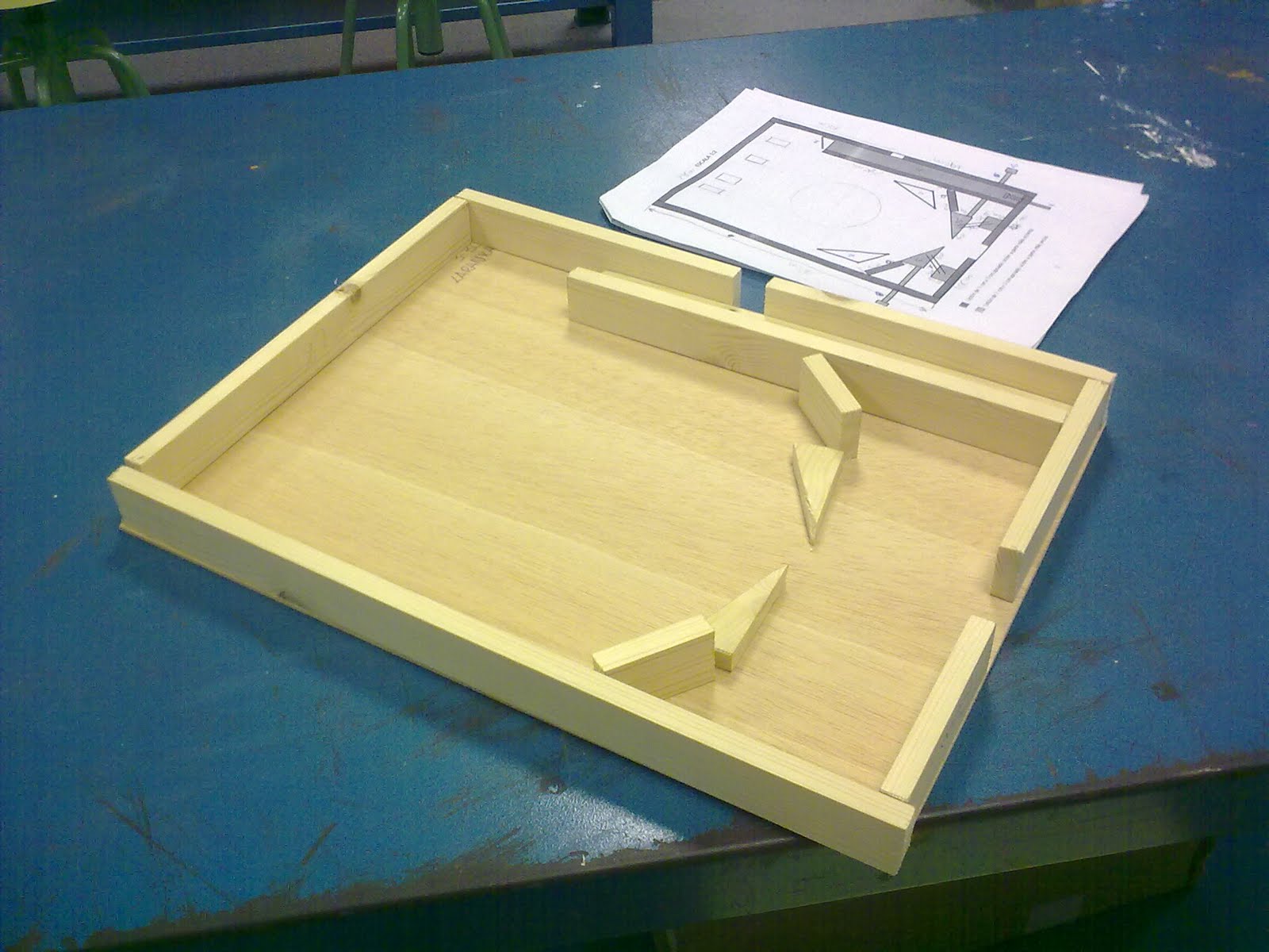 Xa temos as primeiras fotos do proxecto que estamos a realizar en 3º curso. En particular, foi o grupo laranxa de 3ºBC quen conseguiu ter unha primeira aproximación do que será o pinball final. Polo momento non hai nada montado pero remataron a maioría das pezas que integran o pinball base (están a traballar no deseño dos elementos voluntarios) e quixeron colocalas sobre a base de contraplacado para ver que tal encaixaban. Con todos vós, o resultado:
