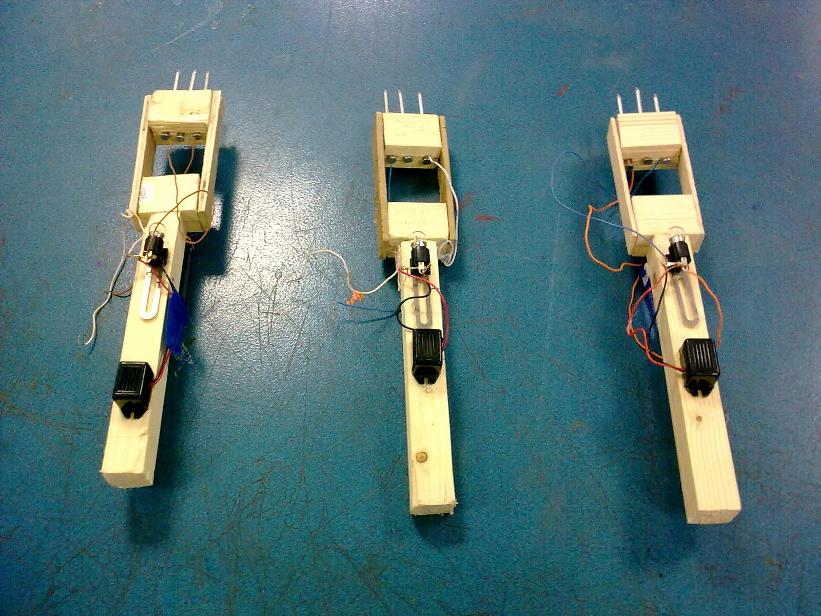 - O equipo formado por Celeste, Lorena, Aitor, Javier, Diego e Jose decidiu construír un garaxe que funciona do seguinte xeito: unha porta de infravermellos activa a apertura da porta do garaxe á vez que acende a luz do interior. Logo de abrirse totalmente, a porta permanece nesta posición un tempo e inicia de forma automática o movemento para pecharse. Cando está totalmente pechada, a luz do interior apágase. A idea orixinal deste proxecto provén da interesantísima páxina tecnologiafacil.net, se ben fixeron algunha modificación sobre o deseño orixinal e realizaron o seu propio código para o control dos dispositivos. Polo momento están tendo algún problema (non teño ningunha dúbida de que será por pouco tempo) coa montaxe do circuíto, que incorpora un relé para a inversión de xiro do motor e outro actuando como interruptor xeral. Como a intensidade proporcionada polas saídas do porto paralelo non é suficiente para alimentar aos relés, cada un deles precisa dunha etapa de amplificación con transistor e isto está traendo de cabeza ao equipo de conexión 🙂 O equipo de programación xa rematou o código para o control da porta e da luz e axiña comezará co procedemento para ler o receptor de infravermellos. Velaí van unhas fotos deste complicado proxecto: