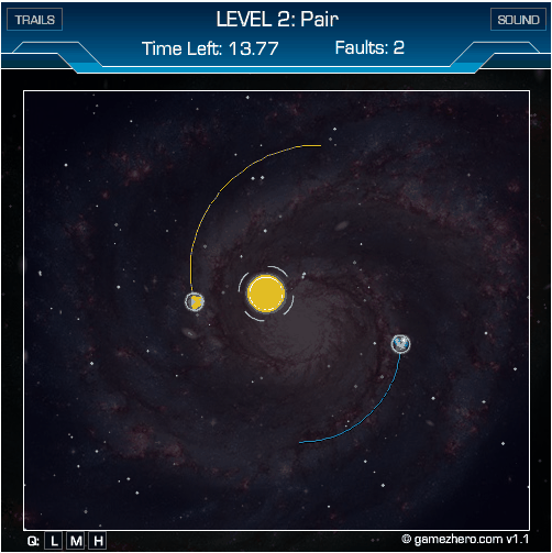 Tedes unha estrela que podedes mover e a gravedade fai que os planetas describan órbitas arredor dela. Onde tedes que situala? Os planetas non poden saír de pantalla, non poden chocar entre eles e tampouco coa vosa estrela. Por suposto, tamén interaccionan entre eles 🙂
