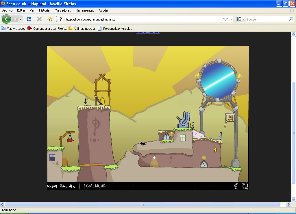 Esta semana propóñovos un xogo de estratexia dos difíciles. Hapland é un clásico que ten segunda, e ate onde eu sei, terceira parte. Pero comecemos polo principio: movede o rato polo escenario na percura de obxectos activos e ideade unha estratexia para acender todos os fachos que se atopan nas entradas da edificación.